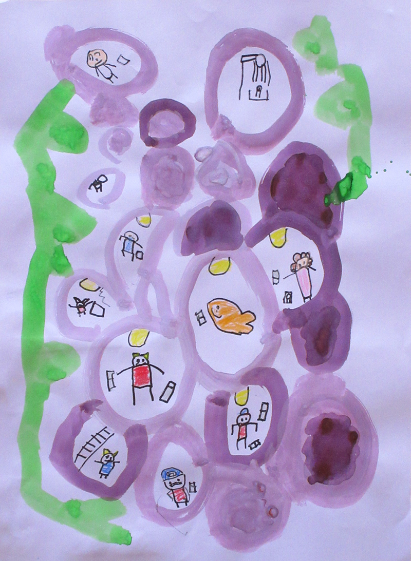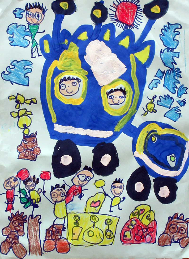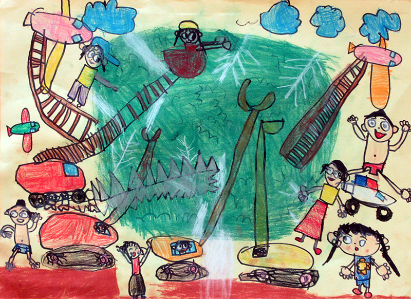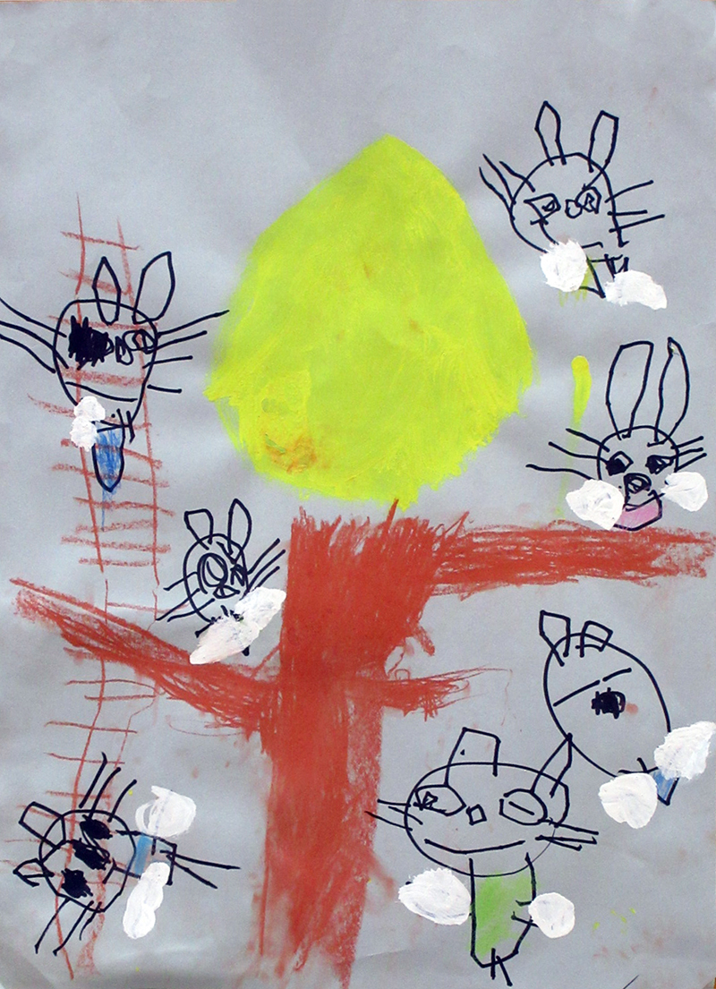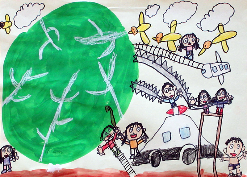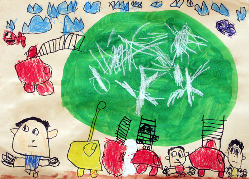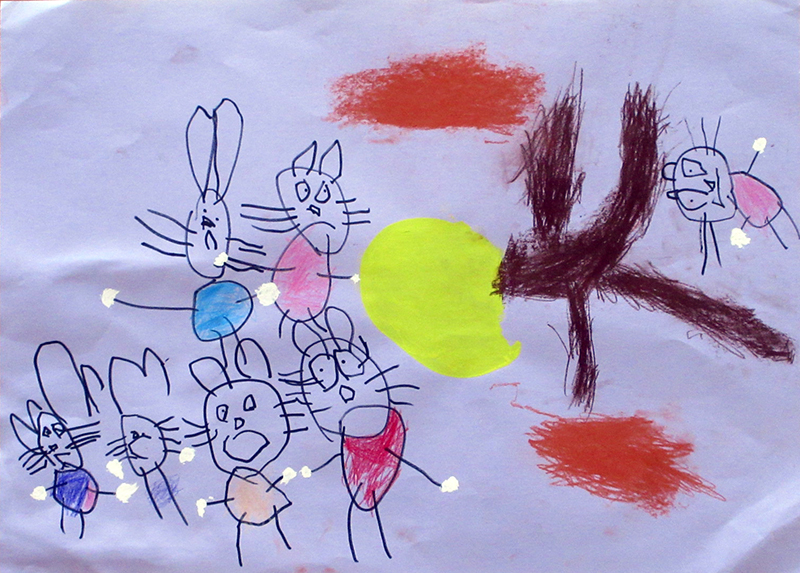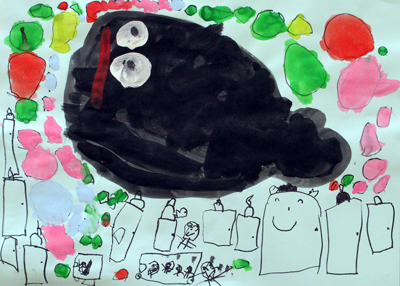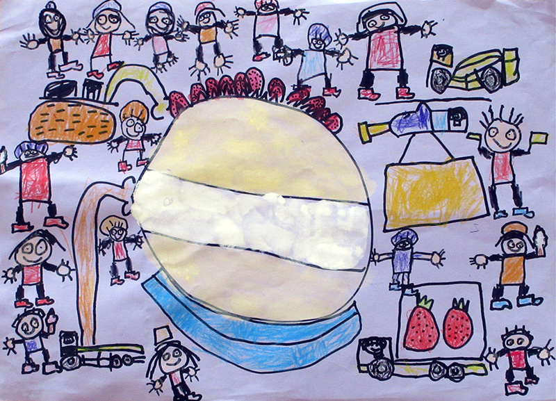 園の行事の思い出やお話をテーマに一人一人、思い思いの絵を描きました。