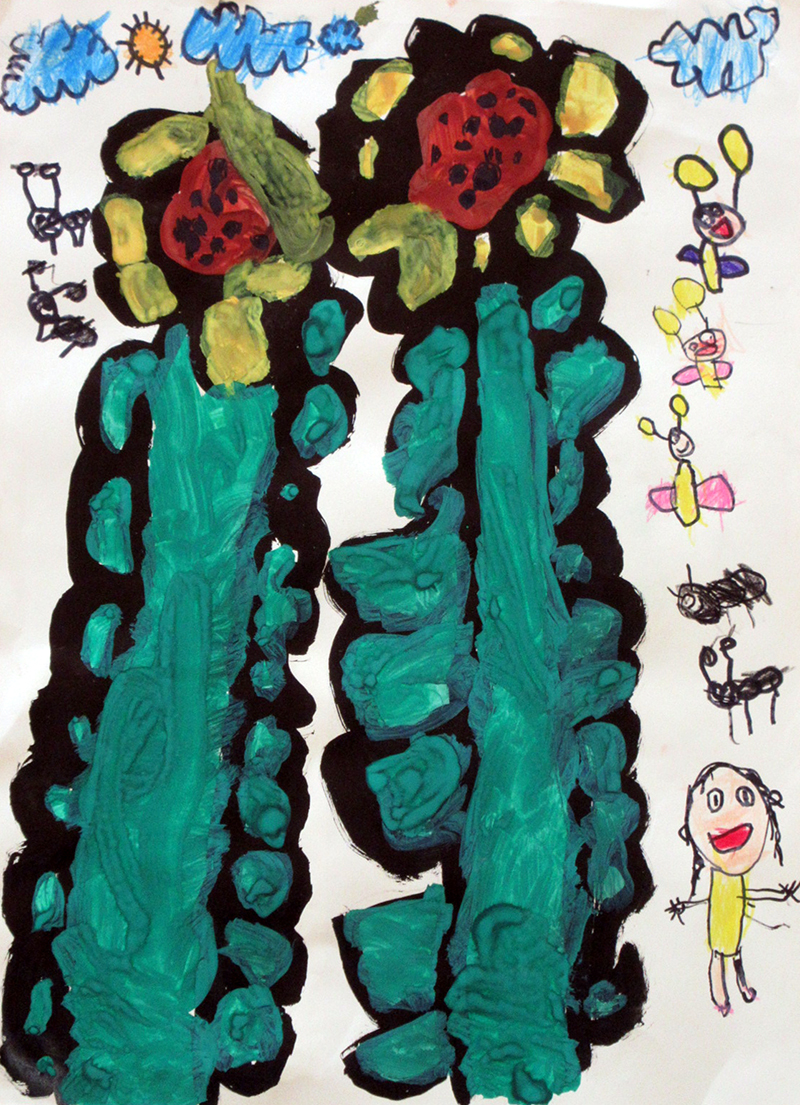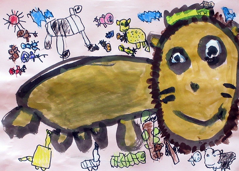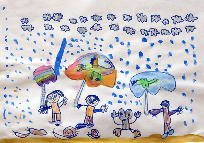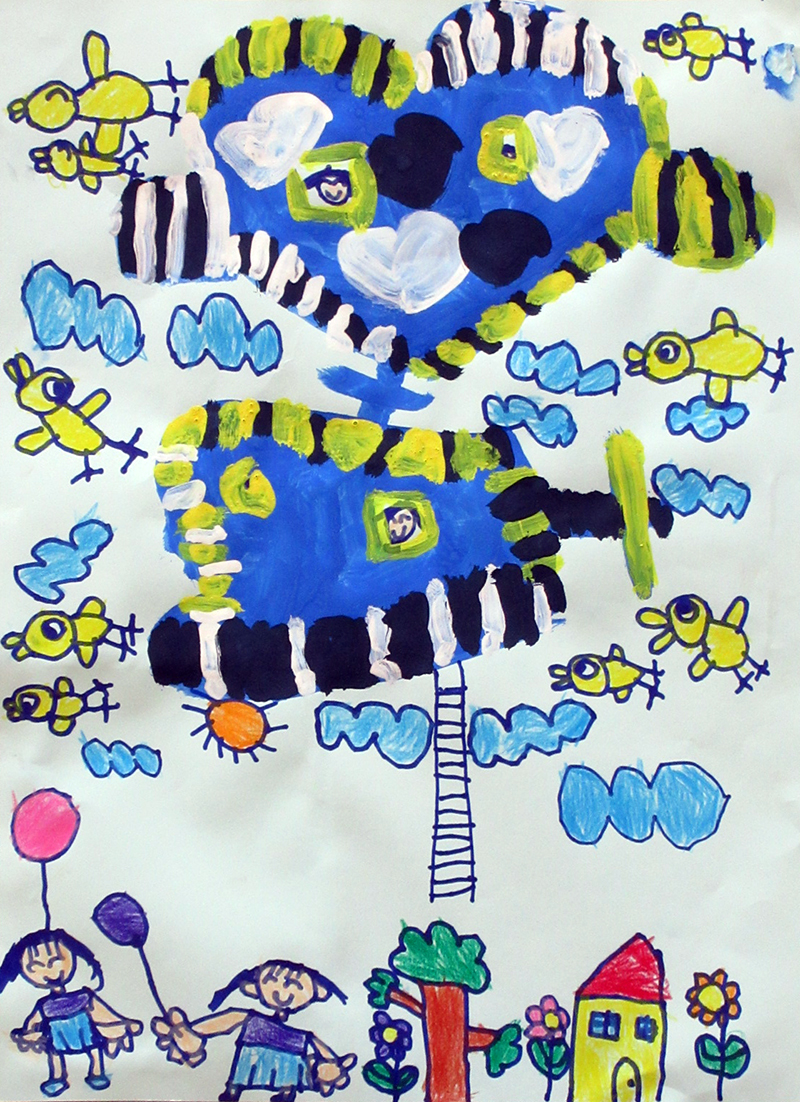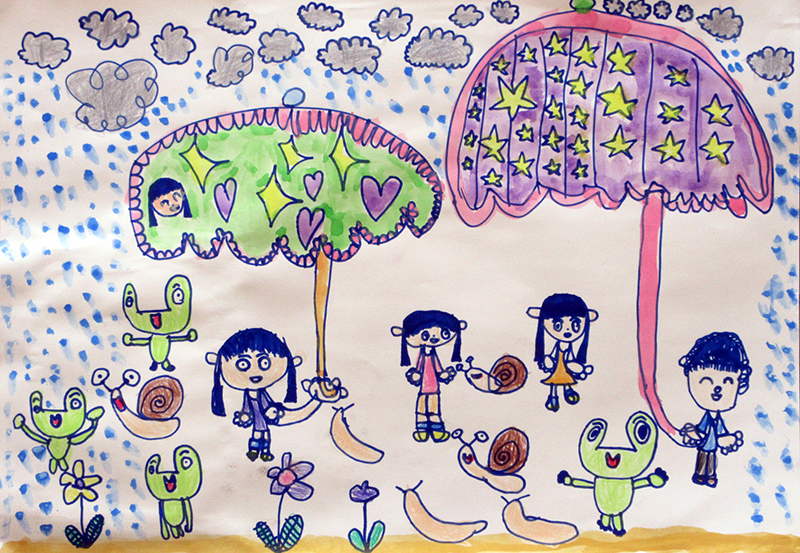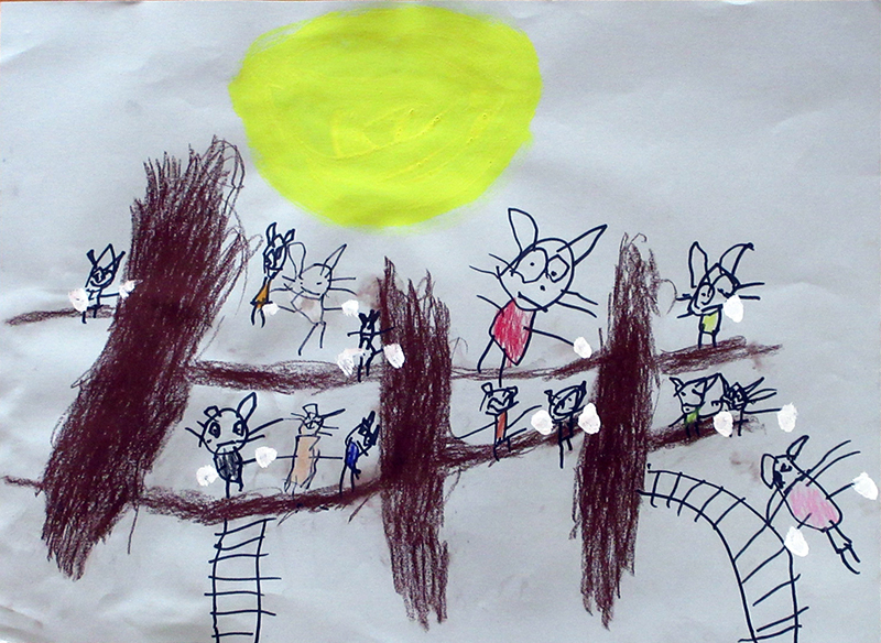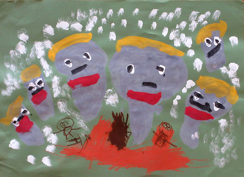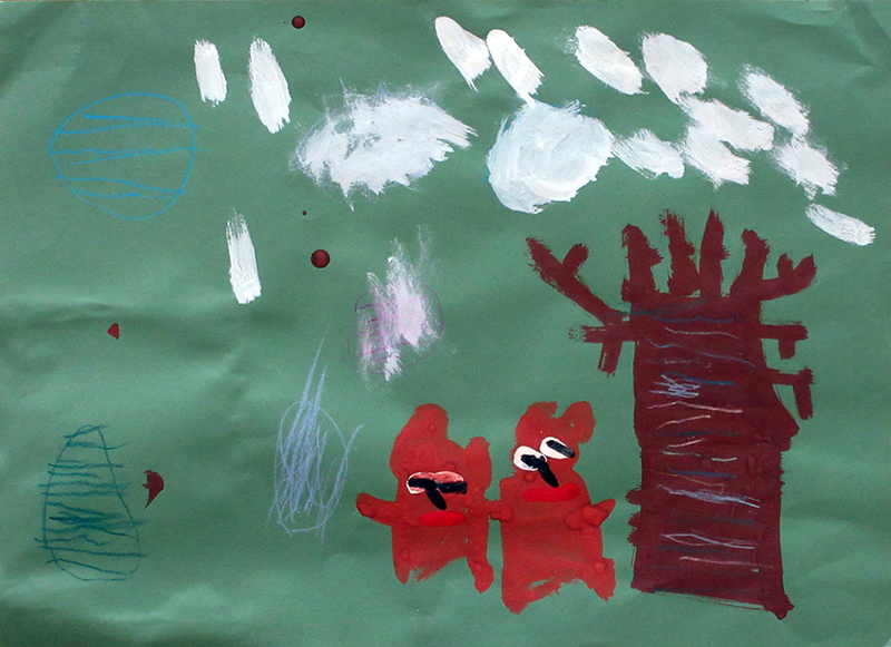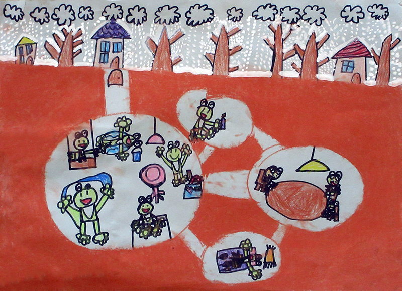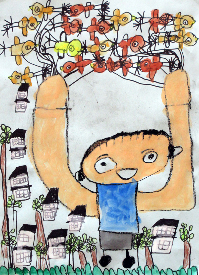 園の行事の思い出やお話をテーマに一人一人、思い思いの絵を描きました。