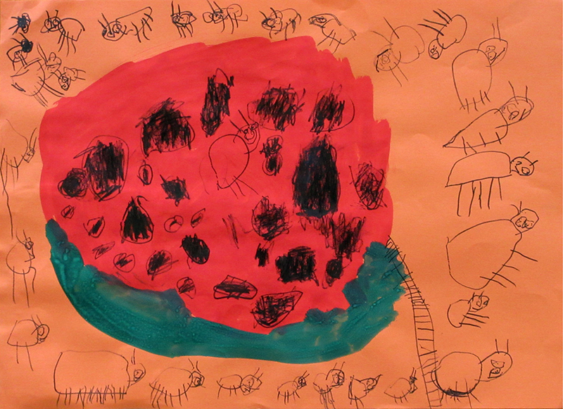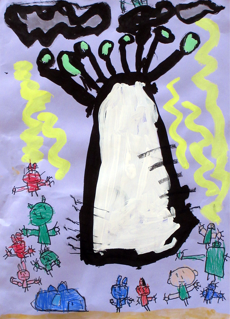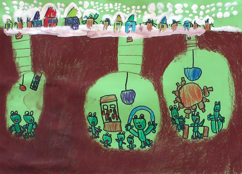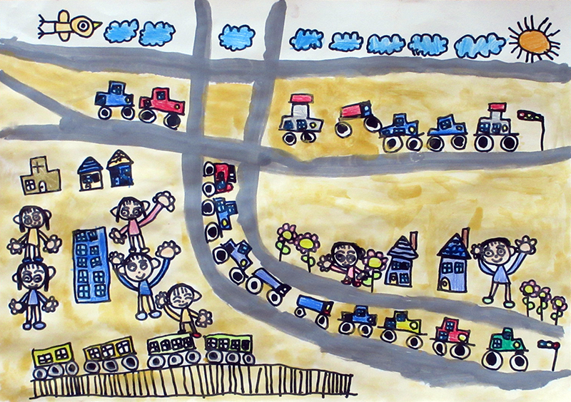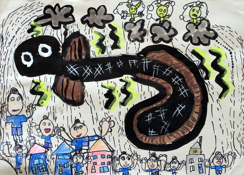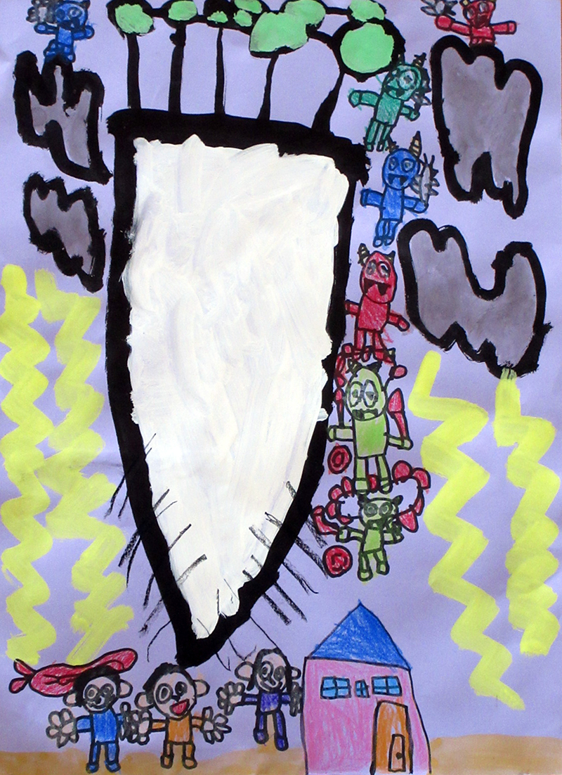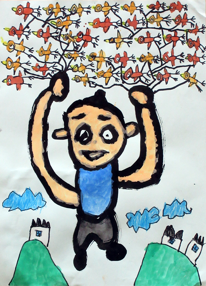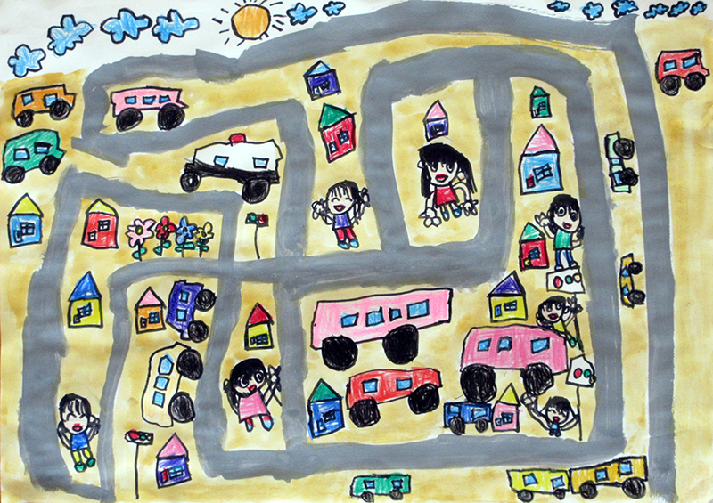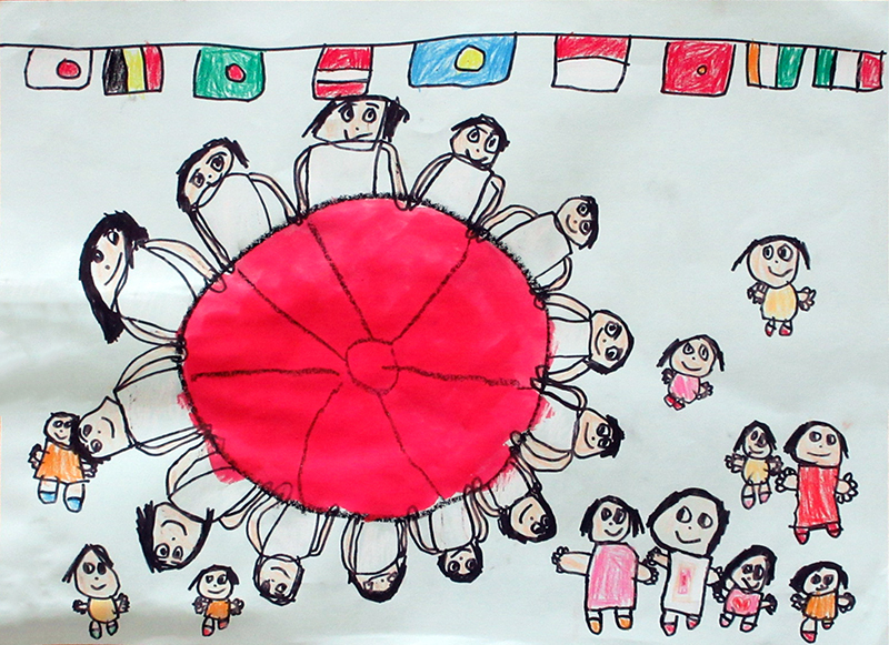 園の行事の思い出やお話をテーマに一人一人、思い思いの絵を描きました。